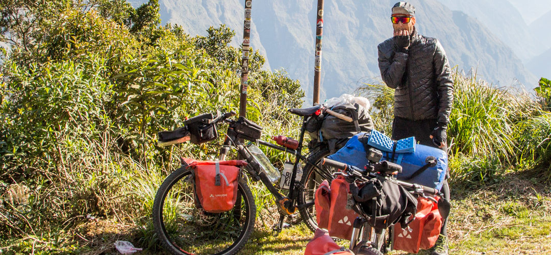 Wir fahren mit dem Rad zur Hauptstraße rauf. Wir sehen einen anderen Traveller der auch in unsere Richtung möchte. Er sagt uns nur gleich: „Er probiert bereits seit 2 Stunden, dass ihn jemand mitnimmt.“ Er ist nur mit einem kleinen Rucksack unterwegs und findet keine Mitfahrgelegenheit. Wir sind zu zweit mit zwei voll bepackten Rädern. Das könnte heute noch ein langer Tag werden. Wir versuchen es mit allen Mitteln. Räder verstecken, damit die Chancen besser werden, dass uns wer mitnimmt. Verstecken von uns Zweien damit, die Chancen für den Italiener besser werden, dass ihn wer mitnimmt ?. Die offiziellen Busse bleiben nur stehen, wenn sie noch Plätze frei haben. Einer fährt vorbei – scheint voll zu sein. Viele LKWs und Autos später bleibt nun endlich ein LKW Fahrer stehen und nimmt uns drei und unsere zwei Räder mit.