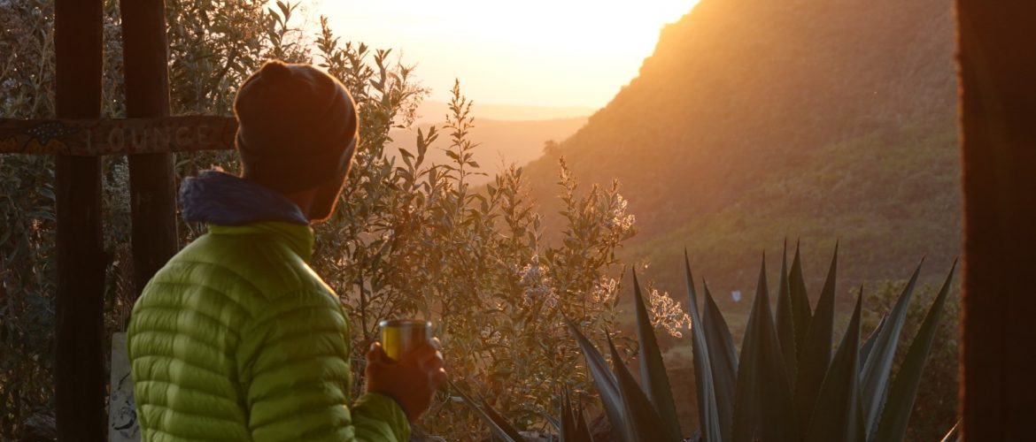 Vom Flachland steigt die Straße steil an, einige hundert Höhenmeter müssen wir überwinden, um zu unserem nächsten Schlafplatz, dem Earth Camp, zu gelangen. Dort oben, am Fuße des Vulkans Eburru, hat ein Japan vor fünf Jahren sein zu Hause gefunden und eine Öko-Lodge errichtet. Kaz legt großen Wert darauf, dass er und seine Gäste null Einfluss auf die Umwelt haben. Es gibt keinen Strom, ein Plumsklo und sogar zwei Saunas.
